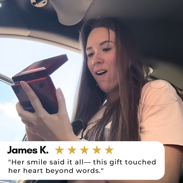 Your piece is lovingly packaged in a complimentary soft-touch box for easy gifting. Elevate your presentation by upgrading to the mahogany-style luxury box, which features a brilliant LED spotlight.